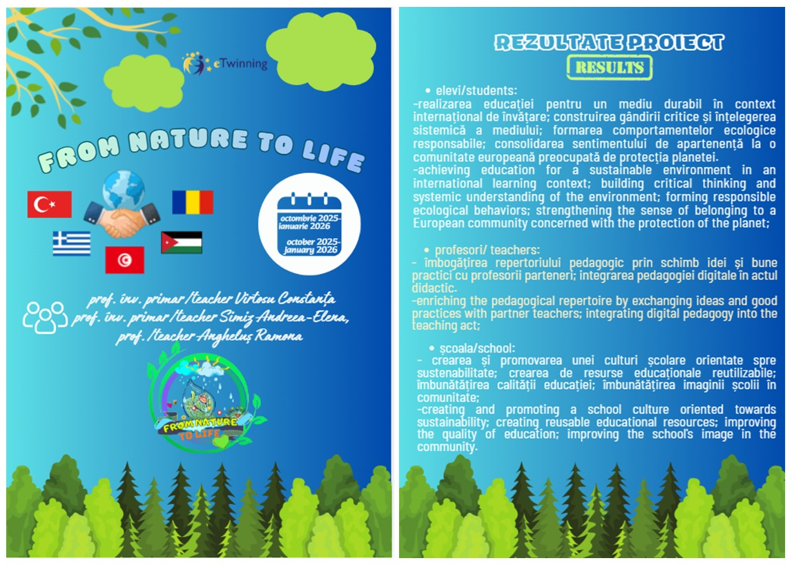 - FROM NATURE TO LIFE –profesor învățământ primar Vîrtosu Constanța, profesor învățământ primar Simiz Andreea, profesor Angheluș Ramona